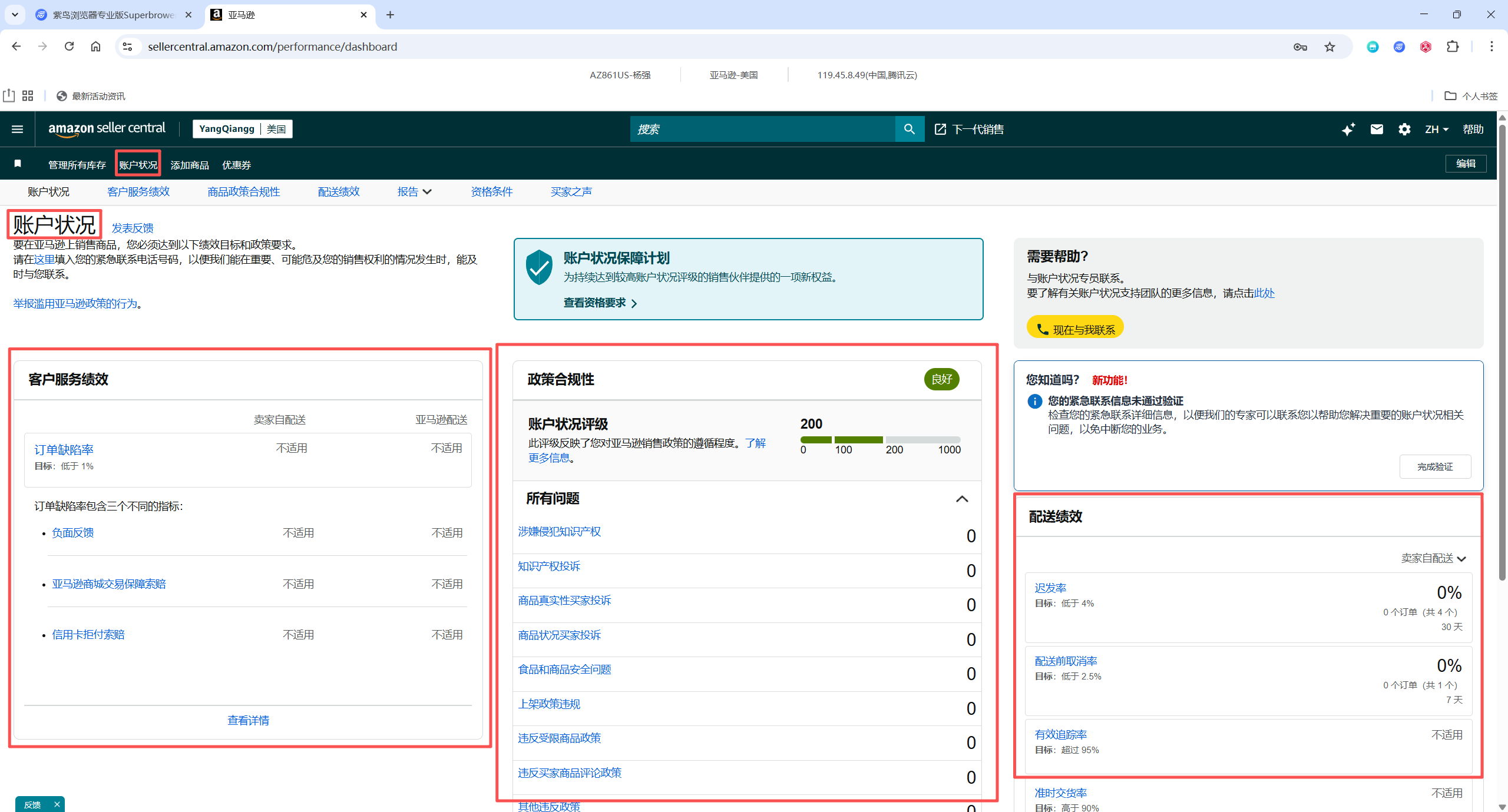 就是当前页面账户状况下,客户服务绩效,政策合规性,配送绩效