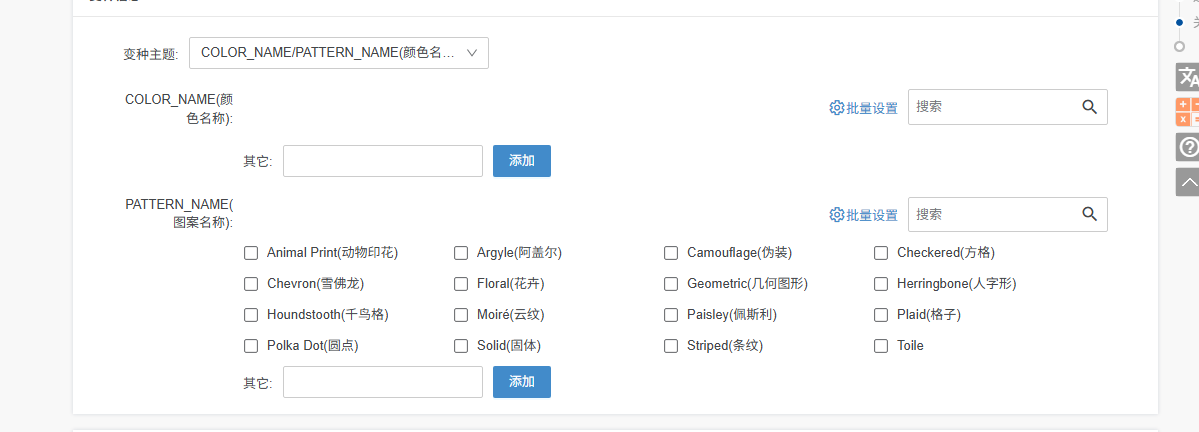 美国站点 商品类型是TOY_BUILDING_BLOCK选择变种主体的时候 COLOR_NAME/PATTERN_NAMEPATTERN_NAME枚举去哪里获取?!ScreenShot_2025-10-20_140802_764.png上面图片是店小秘erp的截图